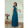 Dlhé spoločenské tyrkysové trblietavé šaty s jemným rukávom