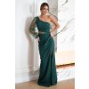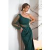 Dlhé spoločenské zelené flitrované šaty na jedno rameno