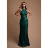 Dlhé spoločenské zelené flitrované šaty s odhaleným chrbtom