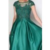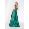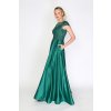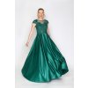 Dlhé spoločenské zelené šaty s čipkou a saténovou sukňou