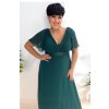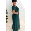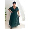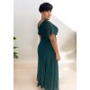 Tieto výnimočné dlhé šaty sú skvelou voľbou na svadbu, ples či inú spoločenskú udalosť. Véčkový výstrih je vpredu aj zozadu šiat. Šaty sú na prsiach vystužené. Vrch šiat je plisovaný. Neprehliadnuteľné a trendy volány tvoria jemný rukáv. Sukňa je dlhá a padavá. Zapínajú sa zozadu na zips.