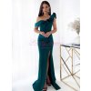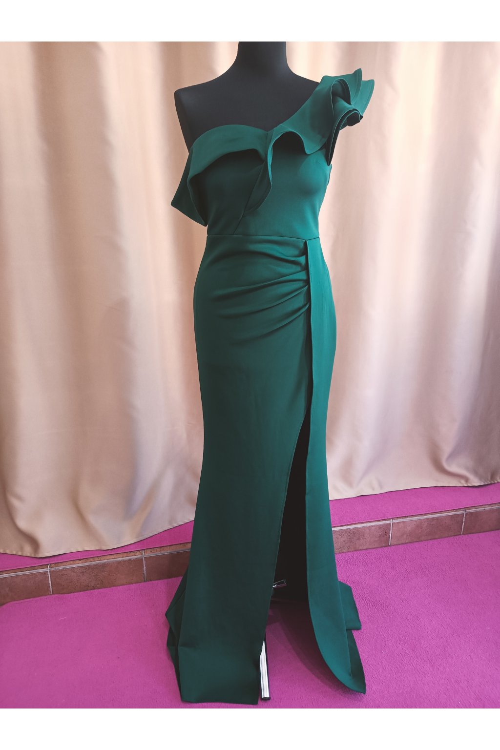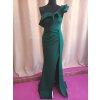 Dlhé spoločenské zelené šaty s volánom na jedno rameno