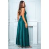 Dlhé spoločenské zelené trblietavé šaty na ramienka