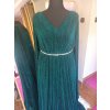 Dlhé spoločenské zelené trblietavé šaty s kamienkovou ozdobou