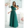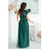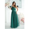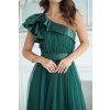 Dlhé spoločenské zelené tylové šaty na jedno rameno
