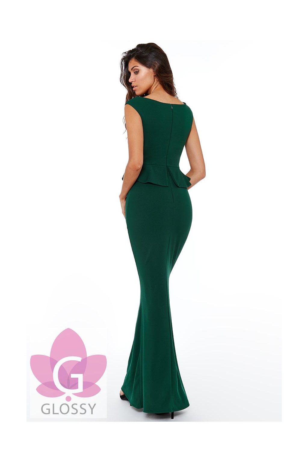 Dlhé tmavozelené šaty s volánom