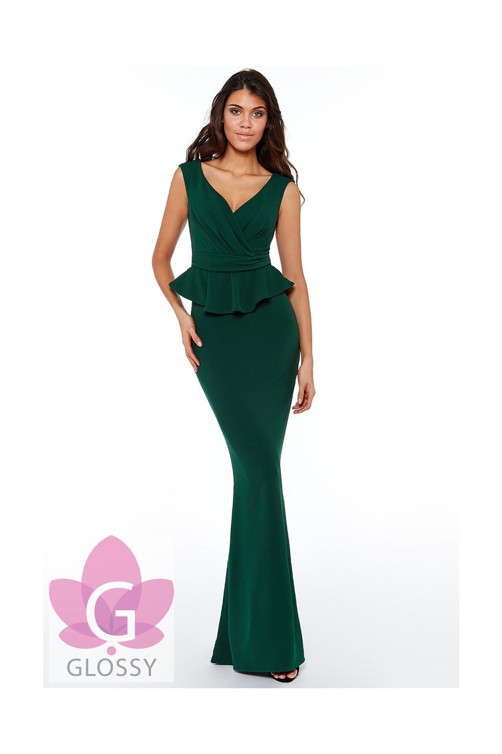 Dlhé priliehavé šaty, ktoré podčiarknú ženskú krásu. Peplum volánik v oblasti bruška zakryje aj najmenšie nedokonalosti. Jemne nariasený véčkový výstrih zvýrazní dekolt. Sukňa je dlhá a priliehavá. Šaty sú z príjemného elastického materiálu. Zapínajú sa na chrbte pomocou zipsu.