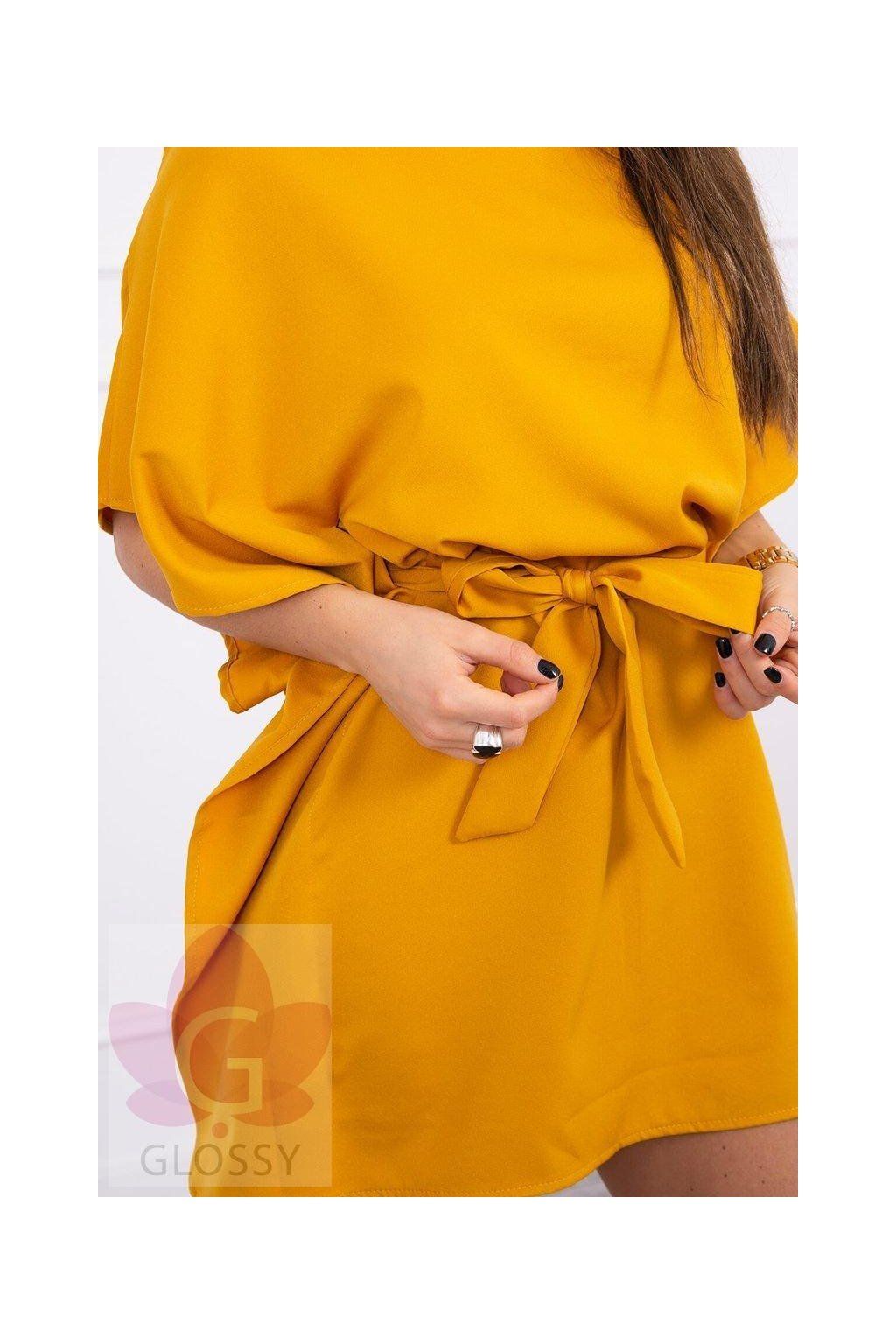 Šaty oversize so zaujímavo riešenými rukávmi. V páse sú na zaviazovanie.