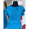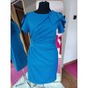 Tieto výnimočné šaty sú skvelou voľbou na svadbu, oslavu či inú spoločenskú udalosť. Na jednom ramene sú šaty zdobené ozdobou. Majú jemný rukáv a na prsiach nie sú vystužené. Na bruchu je riasenie. Sukňa je priliehavá a vzadu má malý rázporok. Chrbát je zakrytý. Zapínajú sa zozadu na zips.
