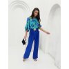 Buď jedinečná a trendy! Tento výnimočný kúsok ti to zabezpečí nielen na spoločenskej udalosti ale aj cez bežný deň, Vrch overalu má voľné rukávy, ktoré sú na boku prestrihnuté. Overal je v páse na gumičku, takže sa krásne prispôsobí. Na chrbte sa zapína na gombík. Má vrecká. Je doplnený opaskom, ktorý má zlatú pracku.