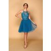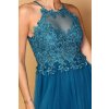 Petrolejové šaty s čipkou a tylovou sukňou