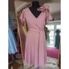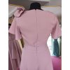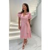 Púdrovo-ružové midi šaty s volánovou ozdobou