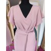 Púdrovo-ružové šaty s volánovým rukávom a opaskom