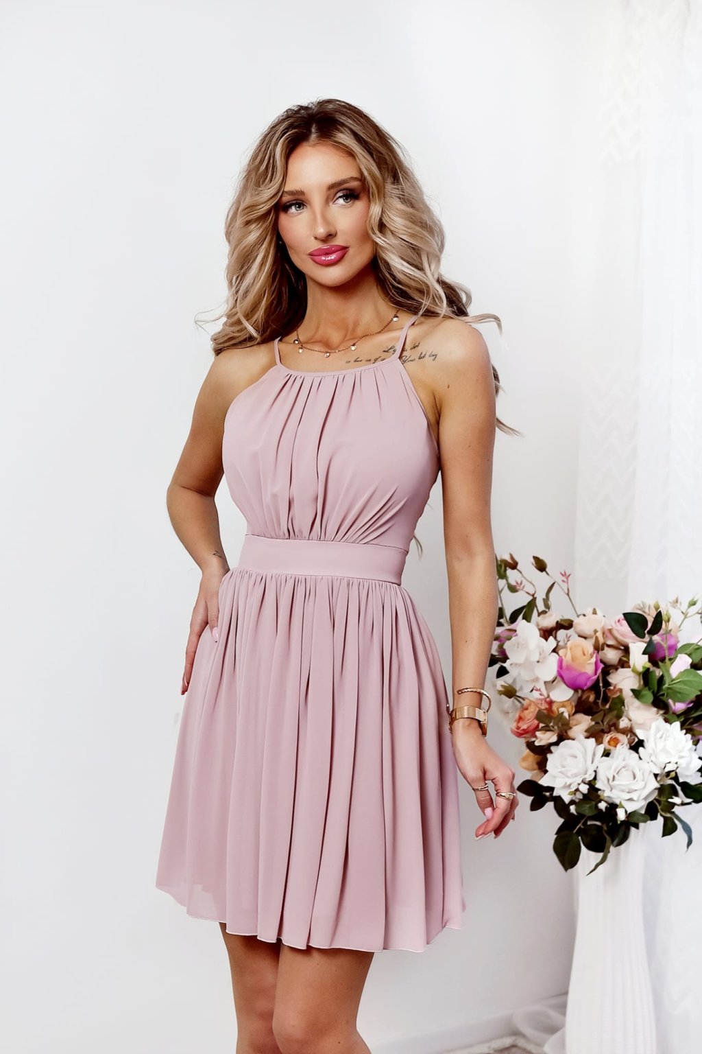 V jednoduchosti je krása a u týchto očarujúcich šiat to platí dvojnásobne. Majú oválny výstrih a tenučké ramienka, ktoré sa viažu na chrbte. Na prsiach nie sú vystužené. Padavá sukňa má spodnicu. Zapínajú sa zozadu na zips.