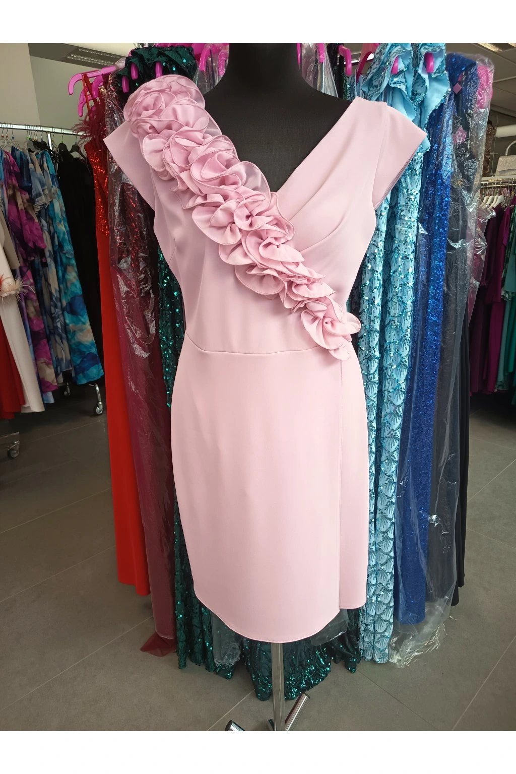 Ružové šaty s ozdobným volánom