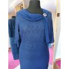 Čaká Vás dôležitá spoločenská udalosť, budete svadobná mama alebo hľadáte šaty na oslavu? Tieto elegantné púzdrové šaty zabezpečia dokonalý vzhľad. Tmavomodrá látka je doplnená leskom vo farbe šiat. Majú trojštvrťový rukáv. Okolo krku majú šifónový šálik so zlatou ozdobou. Zapínajú sa zozadu na zips.
